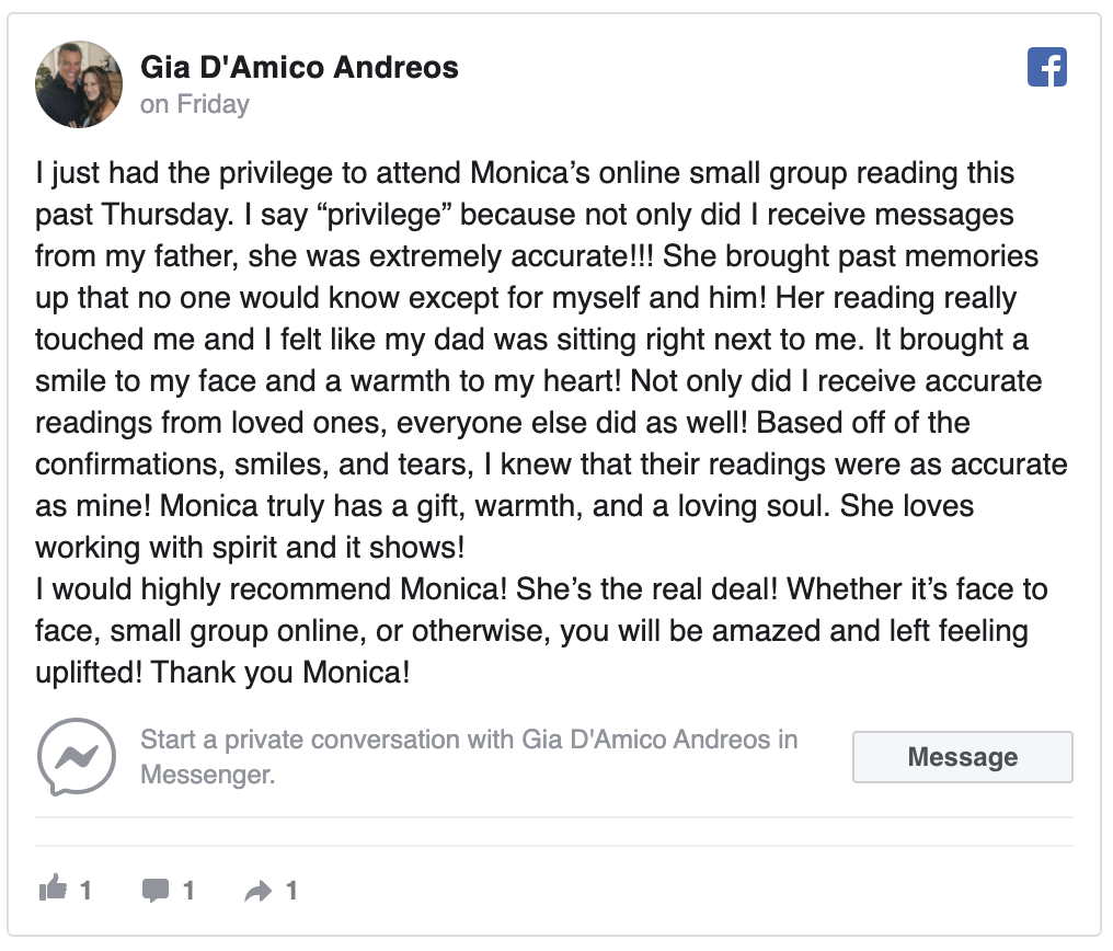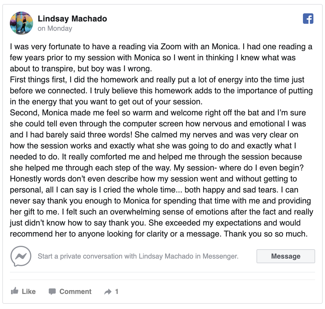 I have helped many people reconnect with their loved ones and live a more joyful life because of their reading and I would love to have that for you as well.